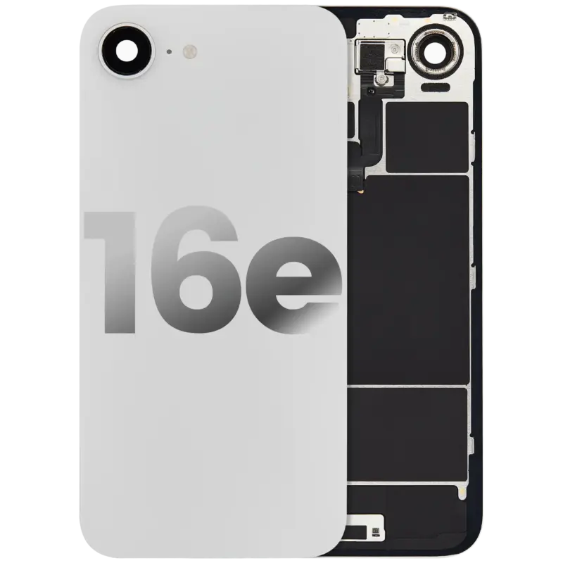Back Glass With Steel Plate With Wireless NFC Charging MagSafe Magnet & Flashlight Flex For iPhone 16e (Used OEM Pull: Grade A) (White)