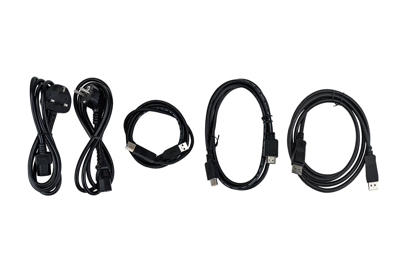 Cables included : AC, HDMI, DisplayPort, USB